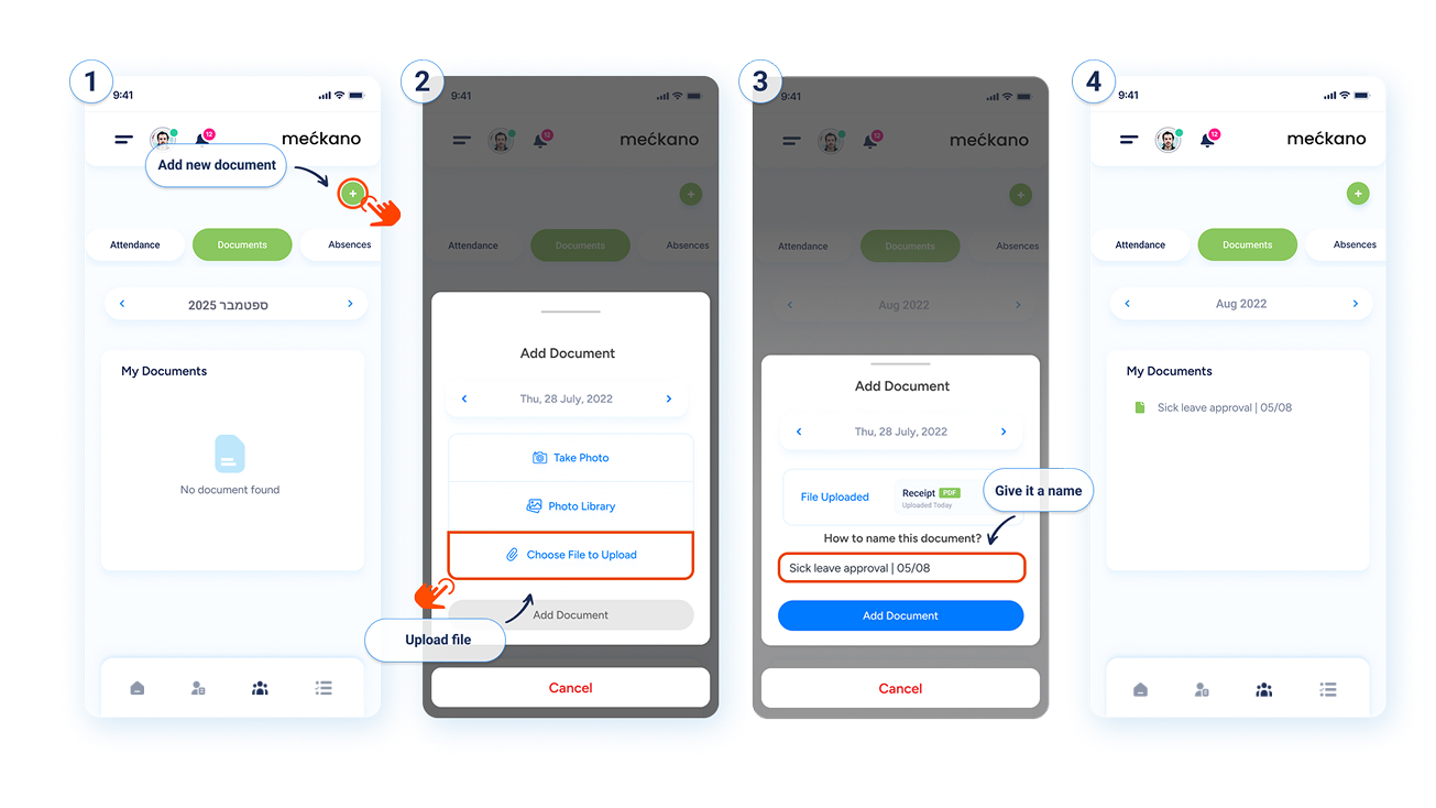 A single place to store and upload all your personal documents, such as sick leave certificates, reserve duty notices, or tax forms (Form 101).